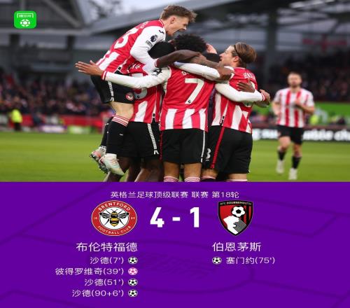 布伦特福德41伯恩茅斯,沙德戴帽,彼得罗维奇乌龙,塞门约破门