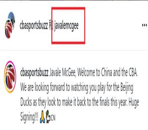 怀特塞德在上海男篮打得风生水起,又一位NBA内线名将来到CBA。2月15日,贾维尔·麦基在社交媒体证实了这一消息。麦基和媒体号“cbasportsbuzz”共创更新了一条动态。麦基身穿北京男篮的球衣,配文写道:“贾维尔·麦基,欢迎来到中国,欢迎加盟CBA!我们期待你代表北京首钢出战,帮助球队重返总决赛。这是一笔重磅引援!”