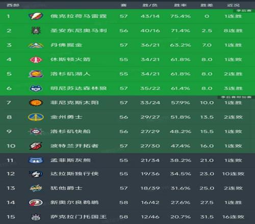 北京时间2月22日,这个比赛日的NBA常规赛结束了所有比赛,我们看看西部最新排名,主要的信息如下:马刺139-122送国王16连败,火箭106-108被尼克斯逆转,太阳113-110绝杀魔术,鹈鹕126-111战胜76人,灰熊120-136不敌热火!