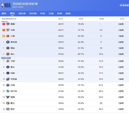 差距仅1.5场,4队抢西部第3!