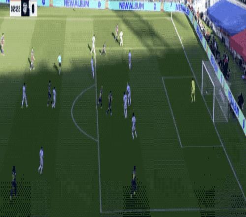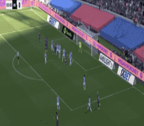 第27分钟,坎塞洛传中,莱万甩头攻门击中立柱,客队逃过一劫。