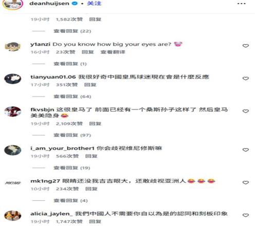 网友们一针见血地指出,能“误触”到这种内容,恰恰说明赫伊森平时就频繁浏览歧视亚裔的帖子,心底本就藏着偏见,所谓的误触,不过是暴露真实想法后,用来逃避责任的遮羞布。