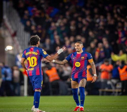 上半场的比赛中巴萨还拿到了点球的机会,拉菲尼亚罚球直接踢进为巴萨再次赢得一分。