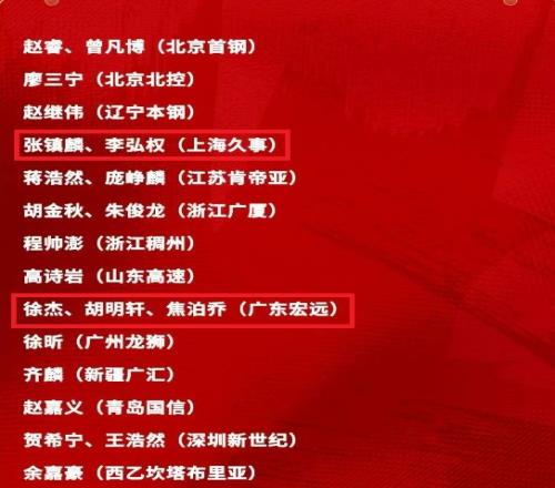 上海球员张镇麟与李弘权,广东球员胡明轩、徐杰与焦泊乔,他们入选中国男篮集训队缺席,老将刘铮也因为备战世预赛缺席。