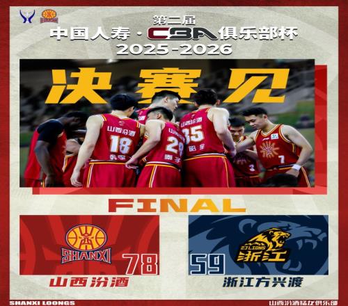 CBA俱乐部杯闯入决赛山西汾酒7859战胜浙江方兴渡