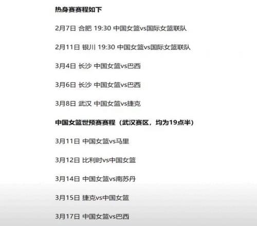 随着一场45分大胜,中国女篮结束2月的热身之旅!下一场赛事出炉