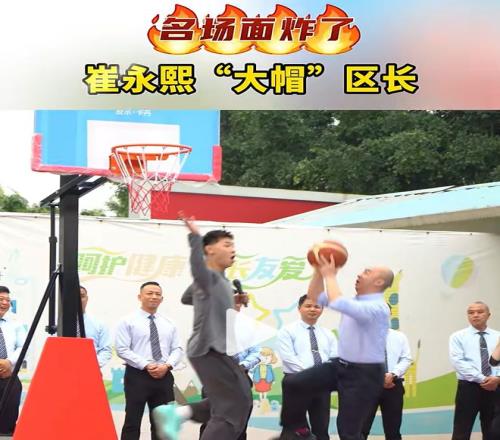 有趣!崔永熙回老家打篮球,直接给区长送上“大帽”