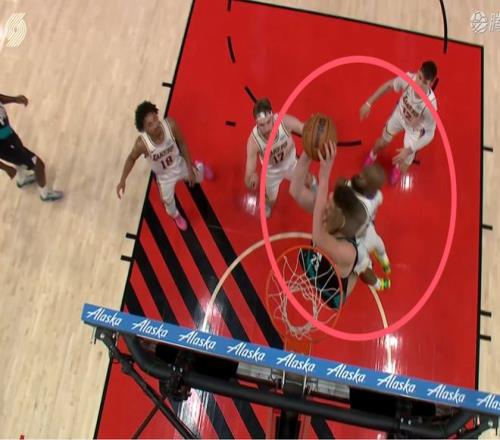湖人对开拓者的比赛在第4节进行到8分51秒的时候,出现了重大争议时刻,当时开拓者112:97领先湖人15分,而克林根半空当中接到队友传球,刚要完成空中接力。此时詹姆斯远远的冲过来,一巴掌扇在了克林根的手上。
