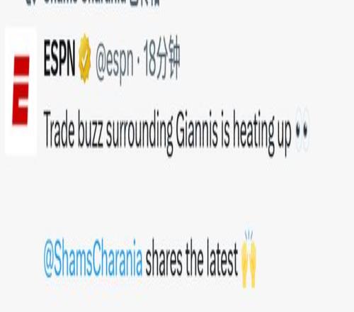名记Shams在今天的节目上带来了字母哥交易的最新动态——