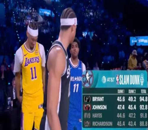 这场扣篮大赛堪称是菜鸡互啄,海斯想要罚球线起跳暴扣,结果多跨了一步等于就是一个普通的扣篮,尴尬的脚趾都要在地上抠出三室一厅,预赛第一扣也只有约翰逊的单手折叠越人暴扣有些看点。(该说不说比戈登、拉文、麦克朗的差太远了,如果对比的话就是全程尿点)