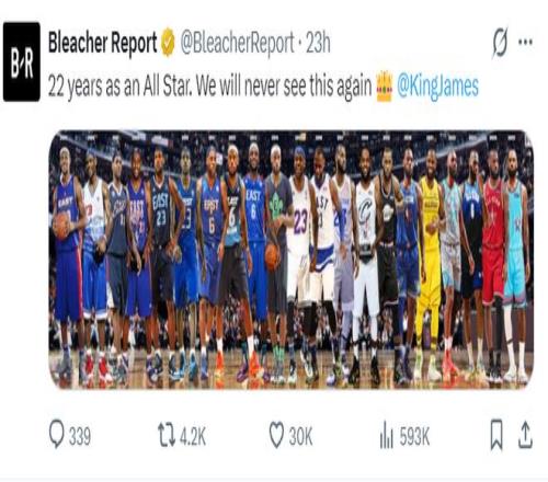 美媒BR写道:连续22年入选全明星,这样的球员以后不会再有了。