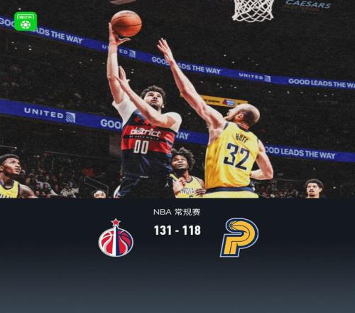 第四节奇才阿隆德斯-威廉姆斯拿下11分,步行者迈卡-波特拿下7分,最终奇才131-118战胜步行者