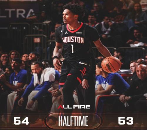 申京内线转身暴扣、弧顶三分球连拿5分,火箭将分差缩小至1分。唐斯迎着防守强投三分命中打破得分荒,杜兰特加速突破完成暴扣,随后再造杀伤两罚全中,半场战罢,火箭54-53反超尼克斯。