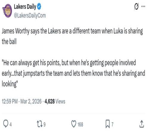 赛后湖人名宿沃西也对此称赞:“他有能力随时得分,但当他早早开始分享球时,全队都会被激活,湖人会成为另外一支球队,他是湖人的未来,这毋庸置疑,他曾杀入过总决赛,他是一名领袖,相信随着经验的积累他会变得更加出色。”