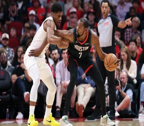 下半场比赛开始,易边再战,米切尔闪电突破抛投得手,揭开第三节比赛序幕,小史密斯的追身三分突施冷箭,还以颜色,梅里尔弧顶回应一个三分球,杜兰特标志性的飘逸跳投又咔嚓命中,米切尔借助掩护的高射炮三分同样也有,亚当斯篮下大号勾手立马予以还击,米切尔和加兰连续冲击火箭内线得手。到第三节中段,骑士彻底崩盘,陷入长达3分多钟的得分荒,被火箭打出一波攻势,分差一度来到了30分以上,三节比赛打完,火箭90-63领先骑士27分。末节决战,即便骑士找回进攻状态,但前面挖的坑实在太大,比赛时间也所剩无几。