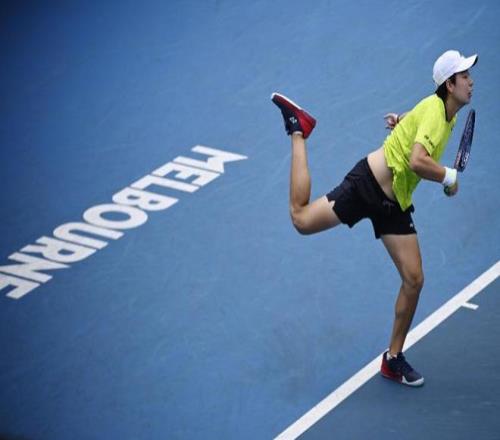 1月15日,白卓璇在澳网资格赛决胜轮中。新华社发