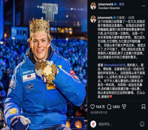 2025年的北欧滑雪世锦赛,特隆赫姆。距离克莱博长大的地方只有5公里。当挪威确定申办这届世锦赛成功时,他就开始在日历上圈出了这些日子。六项比赛,六块金牌。他成为了这个项目历史上最成功的男子运动员。那一刻,头戴王冠的他,仿佛把整个挪威的冬天都披在了肩上。