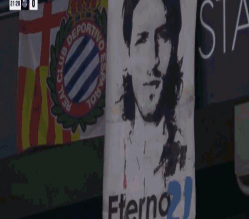 第21分钟,比赛第21分钟,全场鼓掌致意前西班牙人队长达尼-哈尔克