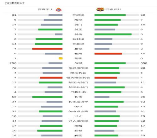 北京时间1月4日西班牙足球甲级联赛 联赛 第18轮,西班牙人主场对阵巴塞罗那。上半场,两队均无建树。下半场,费尔明助攻双响,奥尔莫和莱万相继破门。整场比赛,巴萨门将霍安-加西亚奉献多次精彩扑救。全场比赛结束,巴萨2-0击败西班牙人,迎来各项赛事8连胜,继续稳居西甲榜首。