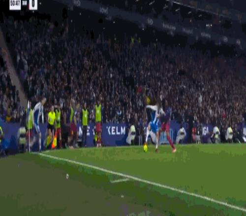 第28分钟,亚马尔转身兜射,皮球稍稍偏出