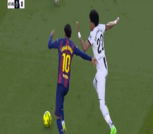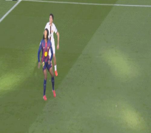 第48分钟,亚马尔禁区内倒地,VAR检查后没有点球
