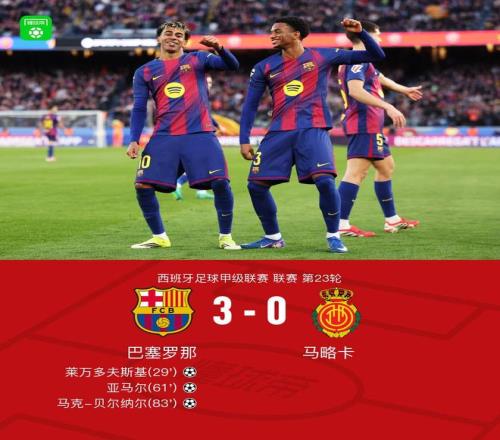 北京时间2月7日西班牙足球甲级联赛 联赛 第23轮,巴塞罗那主场对阵马略卡。上半场禁区内球反弹到奥尔莫腿上,莱万调整后破门。下半场奥尔莫传球,亚马尔轰出一记世界波,之后贝尔纳尔突入禁区冷静扣过防守后折射破门斩获巴萨一线队首球。最终巴萨3-0战胜马略卡。