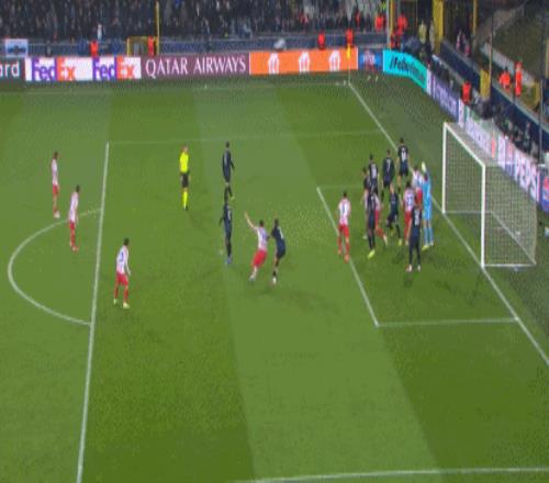 第51分钟,奥涅迪卡角球乱战破门,布鲁日1-2扳回一城!
