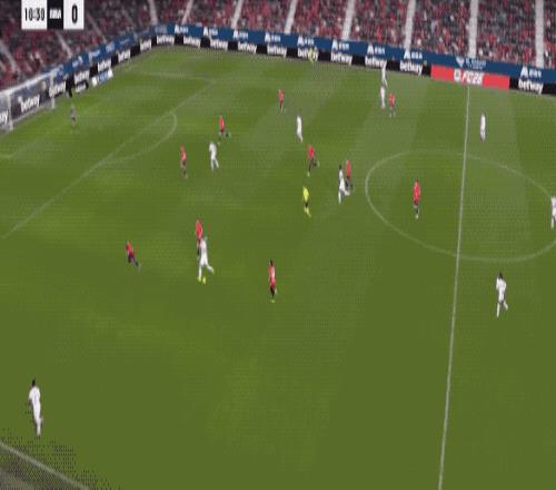 上半场补时阶段,琼阿梅尼禁区内的凌空抽射没能踢正部位,反倒是歪打正着,奥萨苏纳门将做出了关键扑救。