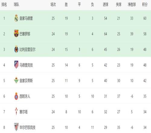 西甲最新积分战报榜首一轮游皇马刚登顶就爆冷输球给巴萨机会