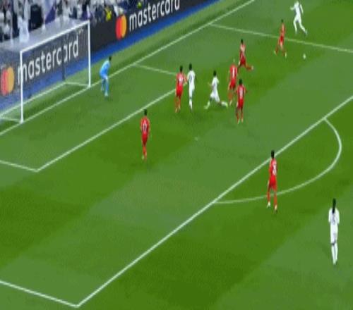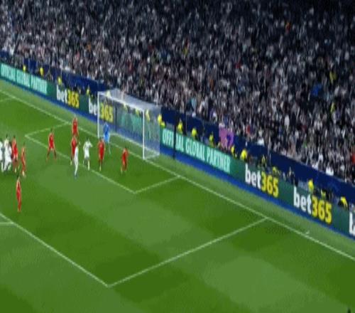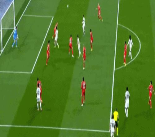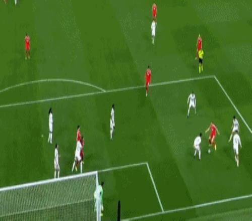 第16分钟,居莱尔做球,巴尔韦德右路倒三角传中,楚阿梅尼迎球劲射,特鲁宾扑了一下依旧入网,皇马迅速扳平比分,1-1!