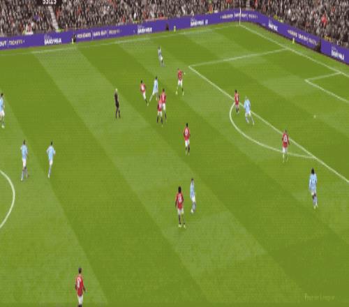 伤停补时阶段,曼联第五次将球送进曼城的球门,库尼亚传球,芒特替补上场2分钟包抄破门,但库尼亚越位在先。