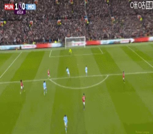 第65分钟,B费直塞助攻,姆伯莫打远角得手,曼联1-0领先曼城!