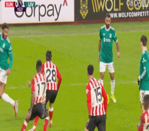 第90+6分钟,琼斯做球,萨拉赫迎球抽射打偏