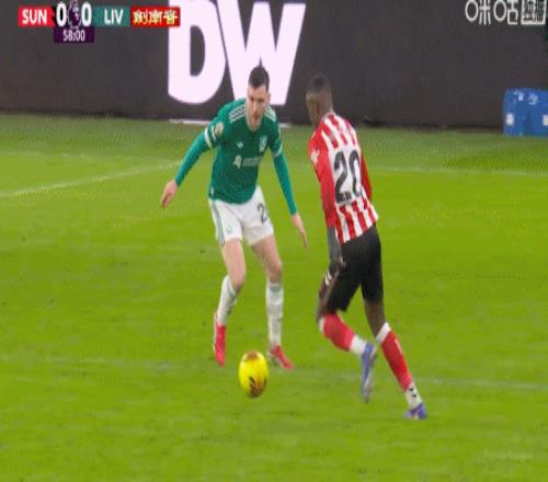 第78分钟,罗伯逊斜传,埃基蒂克头球顶偏