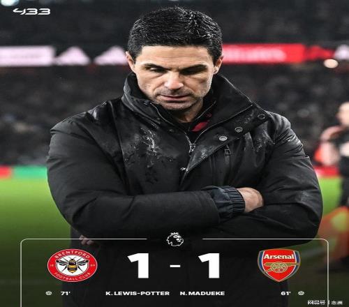 英超第26轮,阿森纳客场1-1战平布伦特福德,领先4分。拉亚险些送礼+神扑救主,马杜埃凯下半场打破僵局,刘易斯-波特扳平,马丁内利补时失单刀。
