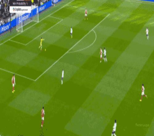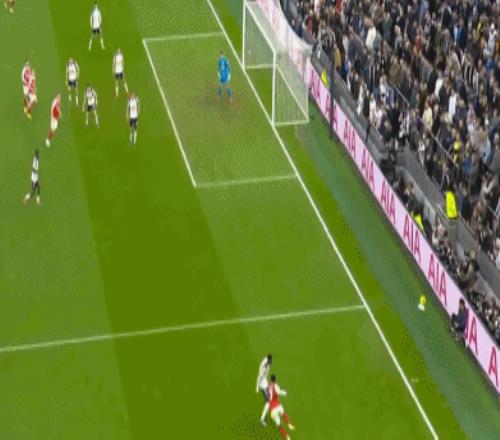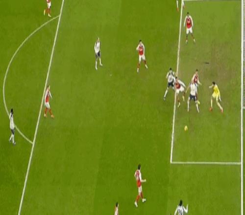 第37分钟,赖斯送出精准长传,萨卡插上单刀低射,维卡里奥出击将球扑出。