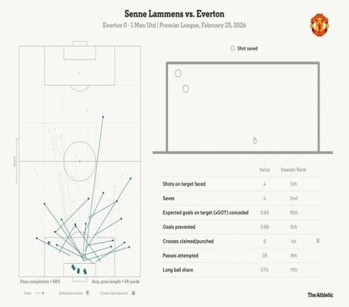 但拉门斯有稳定的守门能力,例如对埃弗顿上半场扑住詹姆斯·加纳的任意球,或者扼杀特里克·乔治最后时刻绝平机会。那看似并不困难,但他没有脱手,没给对手补射或者角球机会,稳稳地保证比分没有改变,那也是现在曼联最需要的。