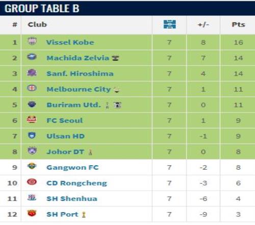 亚冠精英赛7轮积分榜:中超2队提前出局,东亚区8强已定5席