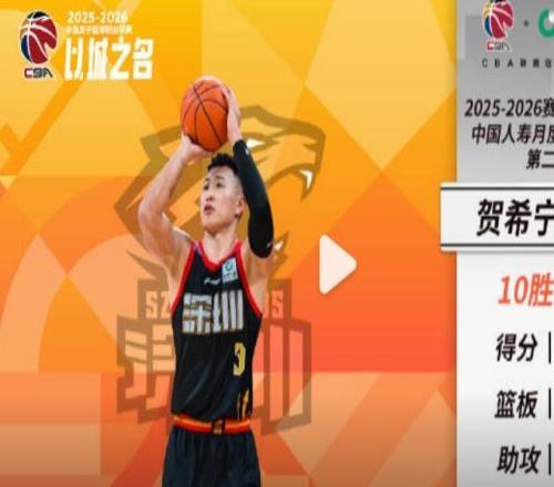 赢麻!CBA官宣:深圳核心贺希宁+史密斯包揽月最佳球员+外援