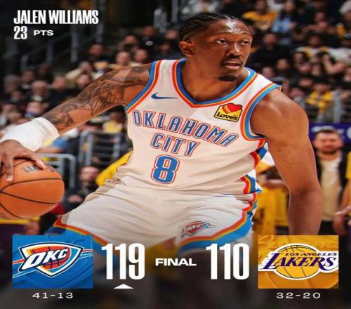 詹姆斯22+6+10 雷霆7人上双胜湖人