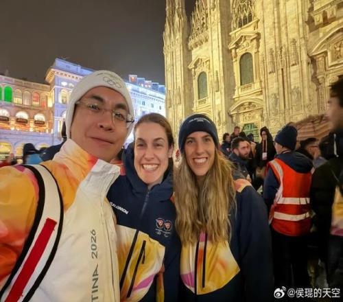 侯琨赴米兰大教堂观看冬奥圣火传递仪式图/侯琨社交媒体