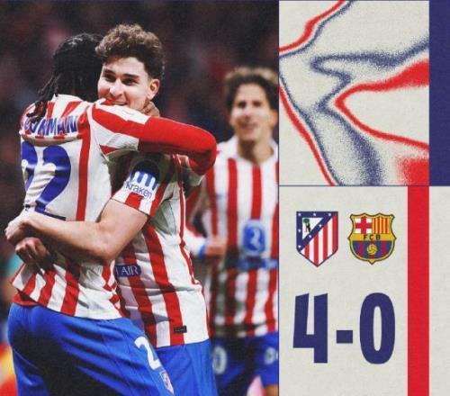 西班牙国王杯半决赛首回合,马竞主场4比0大胜巴萨!埃里克·加西亚乌龙+红牌,格列兹曼破门,冬窗新援卢克曼和阿尔瓦雷斯均传射建功;下半场巴萨进球被VAR吹掉,最终马竞4比0狂胜。次回合将在北京时间3月4日凌晨移师诺坎普进行。