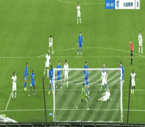 趁着上海申花防线注意力有些不集中,大连英博打出快速反击,薛庆浩在短短的1分钟内,做出两次神勇扑救。