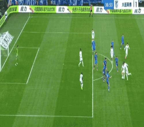 第87分钟,杨皓宇的传球打穿大连英博的防线,盖耶助攻拉唐梅开二度。