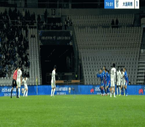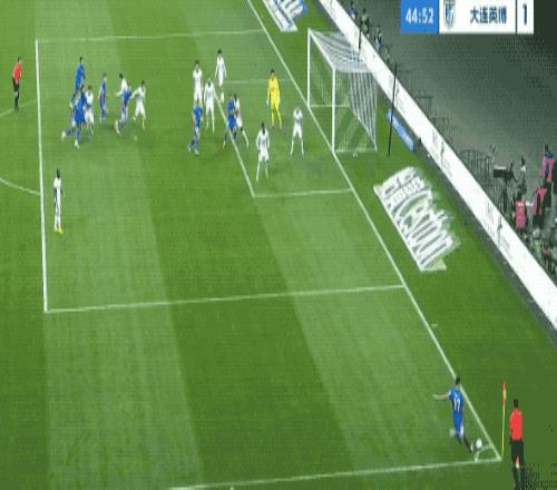 第90分钟,利用角球机会,冯劲为大连英博打进一球。