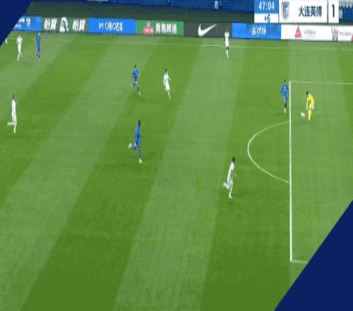 第65分钟,大连英博的角球被破坏,陈晋一视野开阔,送出一脚精准的斜长传,拉唐的射门被挡出,盖耶抢在李可之前,补射破门。