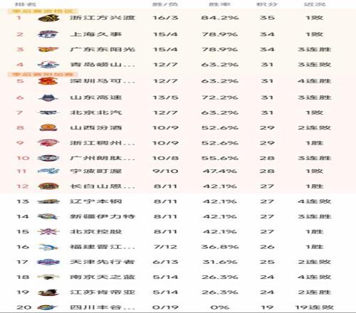 广厦输球仍第1,广东追平豪门,山东逼近前4,辽宁第13,黑马陨落