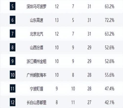 广厦输球仍第1,广东追平豪门,山东逼近前4,辽宁第13,黑马陨落
