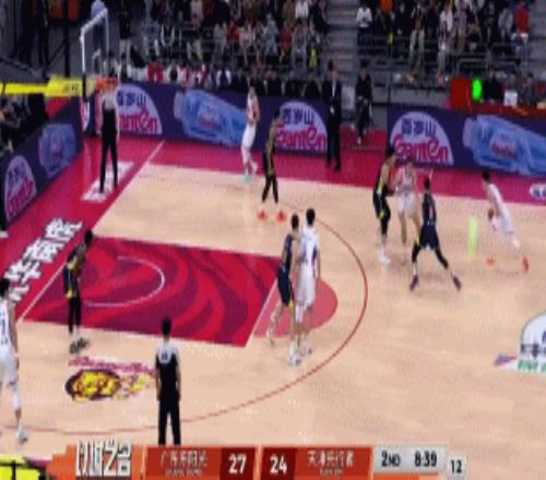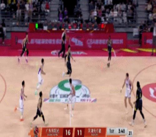首节战罢,广东三分5中0,靠着不断冲击内线+反击取得25-19领先天津(杨溢痛失2记空位三分)。