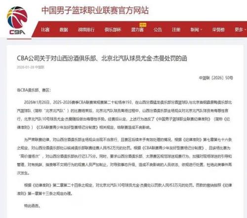 北京时间1月28日,CBA正式官宣了对山西和北京的处罚结果,这也是本赛季CBA开出的第五笔罚单!不过说来有些滑稽,CBA对出现主场观众向北京球员吐口水的山西男篮只处以2万的“重罚”,而对于被吐口水而做出“侮辱性动作”的北京球员杰曼则处以3万罚金。值得一提的是,CBA在本月9号曾发函严重警告山西主场,明确表示山西若然再犯就将重罚,但最终CBA也还是手下留情,只罚款2万。辽篮方面,根据相关媒体报道,他们已经正式签下上赛季效力上海、曾经在季后赛绝杀广东的小外援哈维,不过后者将会在第二阶段才会和球队会合。广州方面,主教练米切尔表示郭艾伦再度拉伤,将缺席第一阶段剩下的比赛。